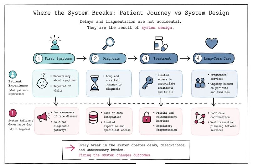 Explore rare disease as a systems challenge shaped by governance, data, and care design. See why long horizon, integrated approaches improve outcomes.