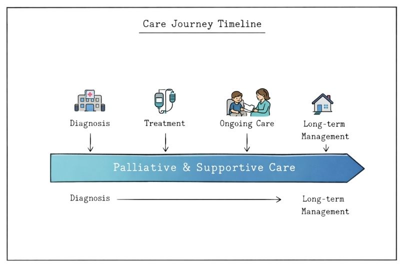 One of the most common misconceptions about palliative and supportive care involves timing and appropriateness. Both services can begin at any point after diagnosis and continue alongside curative or disease-modifying treatments. Research shows that early integration of palliative care improves quality of life, reduces unnecessary hospitalisations, and improves communication between families and medical teams.