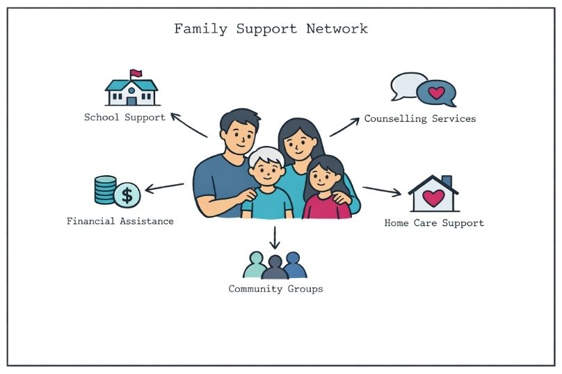 The psychosocial impact of a rare disease diagnosis affects entire family systems. Siblings may experience neglect or anxiety, parents may face additional caregiver burden and financial stress, and extended family members may struggle to understand complex medical situations. Supportive care services tackle these broader impacts through family-centred interventions and resource coordination.